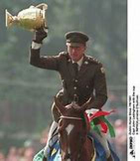 Comdt. John Ledingham, of Co. Meath, Ireland was a member of the Irish Army Equitation School until retirement in 2002. He competed in the Seoul Olympics, 3 World Championships, 3 European Championships, 15 Aga Khan Nations Cups (5 willing teams) and 63 Nations Cups for Ireland. He also was a 3-time winner of The Hickstead Derby and of the Hickstead Speed Derby, and 4-time winner of the Royal Dublin Horse Show Puissance setting a record of 7’5” in 1987!